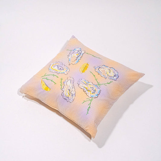 ファーストコレクションは、焚き木、枝葉、とうがらしなどのモチーフを図案化し、洗練された刺繍技術によってプロダクト化したユニークなオリジナルクッションを展開しています。