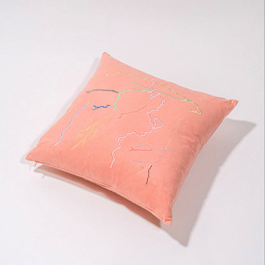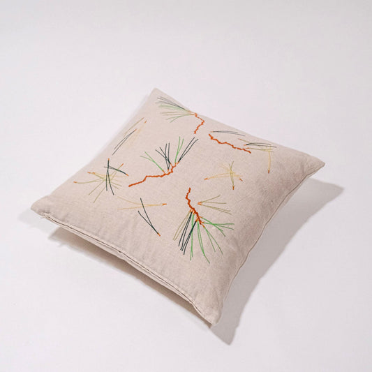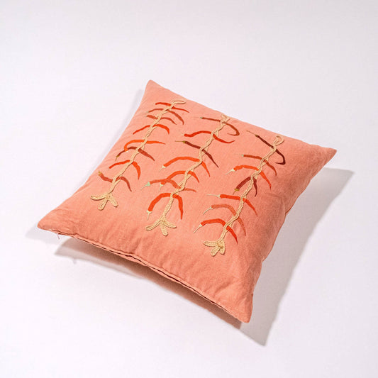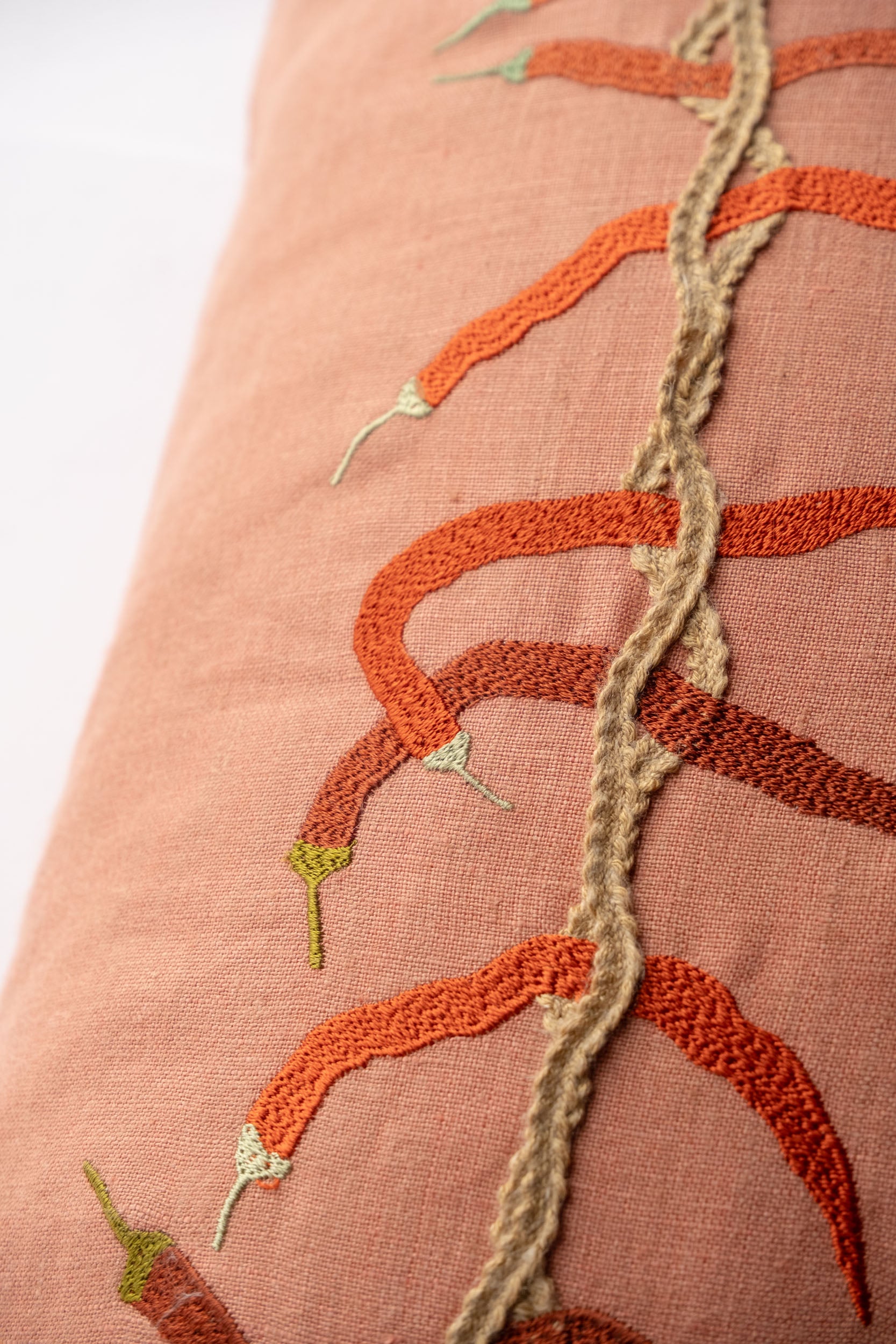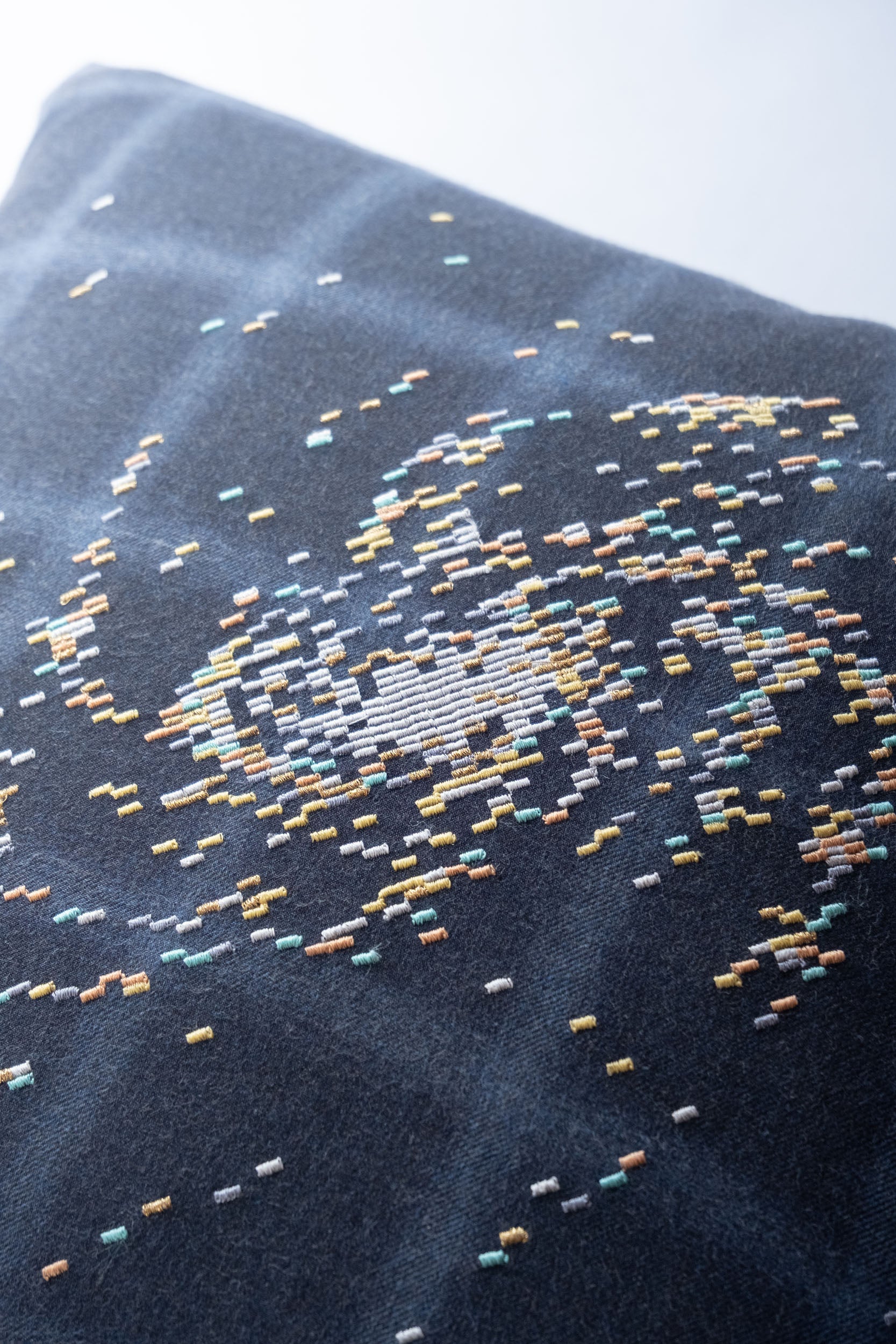 ファーストコレクションは、焚き木、枝葉、とうがらしなどのモチーフを図案化し、洗練された刺繍技術によってプロダクト化したユニークなオリジナルクッションを展開しています。